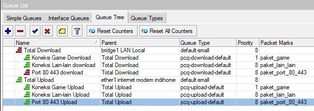 Queue Tree unt Parent (Induk) bandwidth Download & Upload
