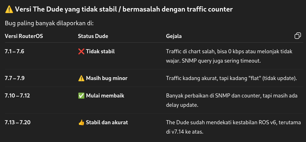 - dude versi 7.20 belum stabil untuk Dude, masih muncul error traffic 0